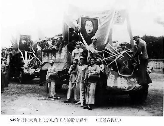 圖為開國大典上北京電信工人的游行彩車(王景春供圖)