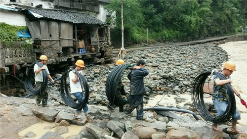 圖為中國(guó)電信重慶云陽(yáng)分公司搶險(xiǎn)人員徒步攜帶搶險(xiǎn)工具奔赴通信搶險(xiǎn)一線。(楊愛民 攝)