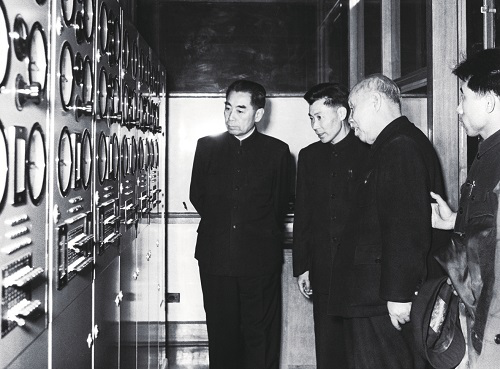 1959年3月15日,周恩來總理、董必武副主席,賀龍、李富春、李先念副總理等領(lǐng)導參觀電報大樓。