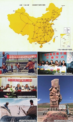 1998年12月31日,隨著“八縱八橫”光纜的最后一項(xiàng)工程——廣北昆成光纜干線電路的打通,經(jīng)過8年的艱苦努力,我國郵電部門終于提前兩年建成了總長達(dá)7萬多公里、覆蓋神州大地的“八縱八橫”光纜干線網(wǎng)絡(luò)。