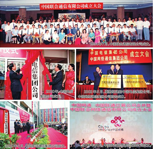 1999年12月和2000年1月、6月,國務(wù)院分別批復(fù)了中國移動通信集團(tuán)公司、中國電信集團(tuán)公司和中國衛(wèi)星通信集團(tuán)公司的組建方案。經(jīng)過緊鑼密鼓的籌備,2000年5月16日,中國移動通信集團(tuán)公司掛牌;5月17日,中國電信集團(tuán)公司掛牌;2001年12月19日,中國衛(wèi)星通信集團(tuán)公司正式掛牌。中國電信、中國移動、國信尋呼、中國衛(wèi)通四大電信集團(tuán)公司的相繼成立,標(biāo)志著電信體制改革取得了重大突破。
