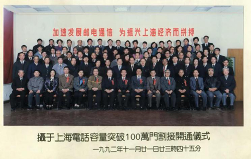 當日,上海電話容量突破100萬門交換設備割接開通儀式在電信大樓19樓舉行,中共中央政治局委員、上海市委書記吳邦國、郵電部部長楊泰芳、國家計委副主任葉青、國務院經貿辦副主任王忠禹、郵電部副部長朱高峰、市委副書記陳至立、副市長夏克強等領導參加了割接儀式。