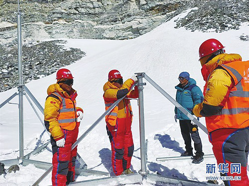 我國(guó)5G網(wǎng)絡(luò)規(guī)模居全球第一。圖為2020年4月,中國(guó)移動(dòng)工作人員在珠穆朗瑪峰架設(shè)全球海拔最高5G基站。