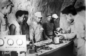 抗日戰(zhàn)爭時期,在通信器材供應(yīng)方面,中央軍委三局采用了“組裝、修配、研制”三步走的策略。圖為延安通信材料廠的技術(shù)人員在窯洞中自制通信器材。