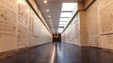 西柏坡紀念館內(nèi)的電報墻。1948年9月至1949年1月,遼沈、淮海、平津三大戰(zhàn)役期間,黨中央、毛澤東從西柏坡共發(fā)出408封電報,運籌帷幄,決勝千里。