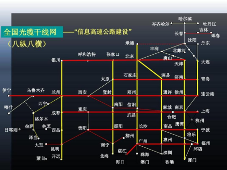 1994年5月12日,郵電部公布的《全國(guó)郵電“九五”計(jì)劃綱要》第一次系統(tǒng)性地提出:到20世紀(jì)末,我國(guó)將全面建成“八縱八橫”、覆蓋全國(guó)省會(huì)城市和重點(diǎn)地區(qū)、連通世界的光纜傳輸骨干網(wǎng)。一個(gè)規(guī)??涨?、科學(xué)先進(jìn)的大型光纜骨干網(wǎng)的宏圖全面成型。