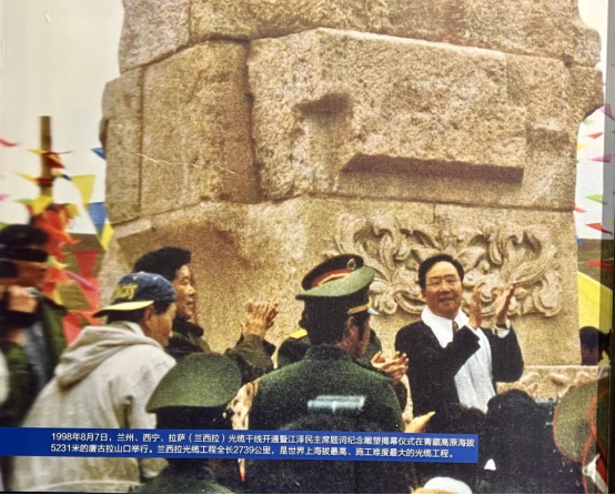 蘭西拉光纜干線開(kāi)通暨江澤民主席題詞紀(jì)念雕塑揭幕儀式 (圖片來(lái)源:中國(guó)電信博物館)