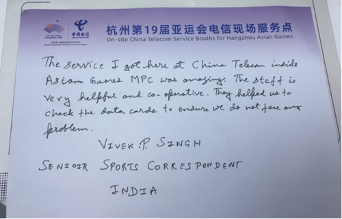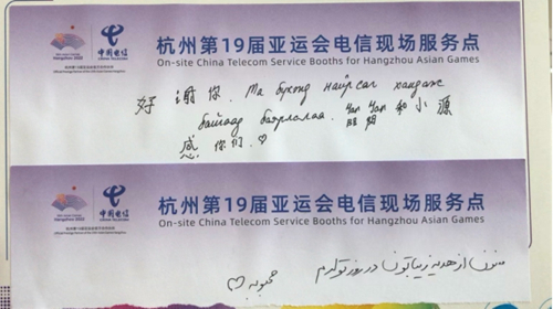 來自卡塔爾某電視臺(tái)的攝像師Mohammed Amine Belkouri一周前來到杭州,辦理了中國電信的5G套餐,這次來主媒體中心的柜臺(tái)查詢流量余額:“中國電信的5G服務(wù)非常棒,速度很快,開幕式的圖像傳輸就是通過它完成的,我介紹朋友們都辦了這個(gè)套餐?!?/p>
