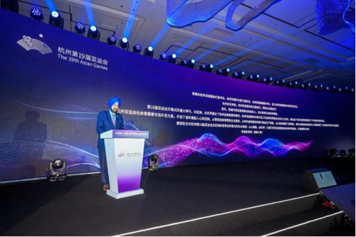 近日,“讓品牌綻放·讓世界注目”杭州第 19 屆亞運(yùn)會(huì)贊助企業(yè)答謝大會(huì)在贊助企業(yè)接待中心隆重舉行。亞奧理事會(huì)代理主席亞奧拉賈·蘭迪爾·辛格,杭州亞組委執(zhí)行秘書(shū)長(zhǎng)、杭州市副市長(zhǎng)陳衛(wèi)強(qiáng),杭州亞組委副秘書(shū)長(zhǎng)、浙江省體育局副局長(zhǎng)張亞?wèn)|等領(lǐng)導(dǎo)出席大會(huì)。浙江公司黨委委員、副總經(jīng)理劉小忠?guī)ш?duì)出席。