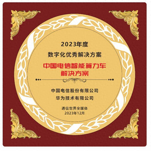 12月28日,“中國(guó)電信智能算力車(chē)解決方案”榮獲2023年度數(shù)字化優(yōu)秀解決方案,得到了行業(yè)組織、行業(yè)客戶在內(nèi)的評(píng)審專(zhuān)家們的一致認(rèn)可。