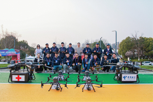 為確保賽事安全舉辦、有序進行,在南京市、區(qū)領導及建鄴區(qū)組委會的指導下,中國電信無人科技派出由28人組成的“空中醫(yī)療衛(wèi)士”專業(yè)團隊,搭建起由6架醫(yī)療保障物流無人機、3臺空中保障無人機以及部署在江心洲上4套無人機自動化作業(yè)機場組成的空地一體醫(yī)療保障體系。
