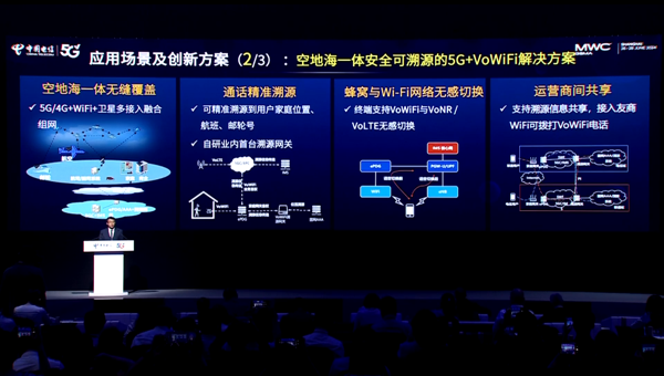 回顧三年來中國電信與產(chǎn)業(yè)鏈合作伙伴的共同努力,從VoWiFi技術驗證、三省試點到多網(wǎng)絡組合下的端網(wǎng)聯(lián)調(diào)、VoWiFi海上/機上技術驗證,在推動VoWiFi商用落地過程中,中國電信持續(xù)引領技術標準創(chuàng)新,提出空地海一體、安全可溯源的5G+VoWiFi解決方案,業(yè)界首次在現(xiàn)網(wǎng)實現(xiàn)空、地、海一體無縫覆蓋。