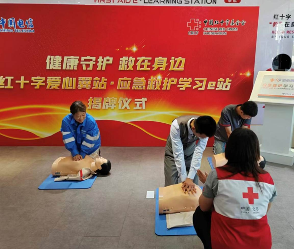 8月21日,全國(guó)首家“紅十字愛(ài)心翼站·應(yīng)急救護(hù)學(xué)習(xí)e站”在中國(guó)電信通州新華大街營(yíng)業(yè)廳正式揭牌,此舉標(biāo)志著中國(guó)電信與中國(guó)紅十字基金會(huì)攜手共建的“紅十字愛(ài)心翼站·應(yīng)急救護(hù)學(xué)習(xí)e站”項(xiàng)目正式落地實(shí)施,旨在將專業(yè)的急救知識(shí)和技能普及到更廣泛的社區(qū)和民眾之中,提高公眾自救互救能力,為社區(qū)安全保駕護(hù)航。中華全國(guó)總工會(huì)權(quán)益保障部副部長(zhǎng)金華勇出席活動(dòng),中國(guó)電信全渠道運(yùn)營(yíng)中心總經(jīng)理郭勇和中國(guó)紅十字基金會(huì)理事長(zhǎng)貝曉超致辭。