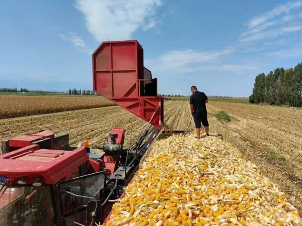 連接了電信5G物聯(lián)網(wǎng)的農(nóng)機(jī)車自動(dòng)進(jìn)行玉米收割