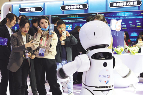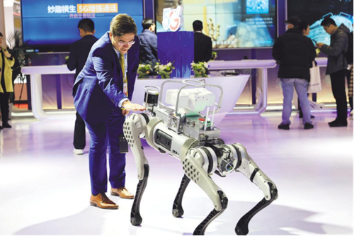 走進(jìn)中國(guó)電信展臺(tái),首先映入眼簾的是機(jī)器狗“B1”,惟妙惟肖的姿態(tài)、靈活矯健的步伐,吸引了一大批觀眾前來(lái)互動(dòng)。