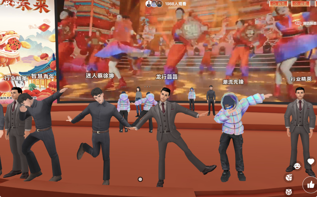 2024年2月2號(hào),中國(guó)電信員工2024年春節(jié)云聯(lián)歡正式開(kāi)啟,本次活動(dòng)首次采用新技術(shù),新視覺(jué)方式展現(xiàn),國(guó)脈文化為中國(guó)電信集團(tuán)全體員工提供沉浸式、高互動(dòng)、新視覺(jué)的元宇宙聯(lián)歡會(huì),為整個(gè)云聯(lián)歡提供線上全流程直播技術(shù)支撐?;顒?dòng)所有核心能力均出自國(guó)脈文化自有核心能力,包括元宇宙技術(shù),音視頻直播技術(shù)等。