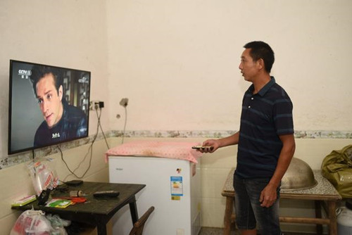 圖為陽建民在家里收看IPTV電視,翻看感興趣的節(jié)目。