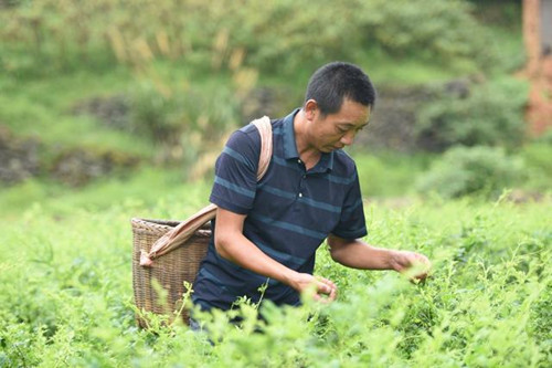 圖為陽建民進(jìn)行摸索實(shí)踐后,莓茶種植變得輕車熟路。